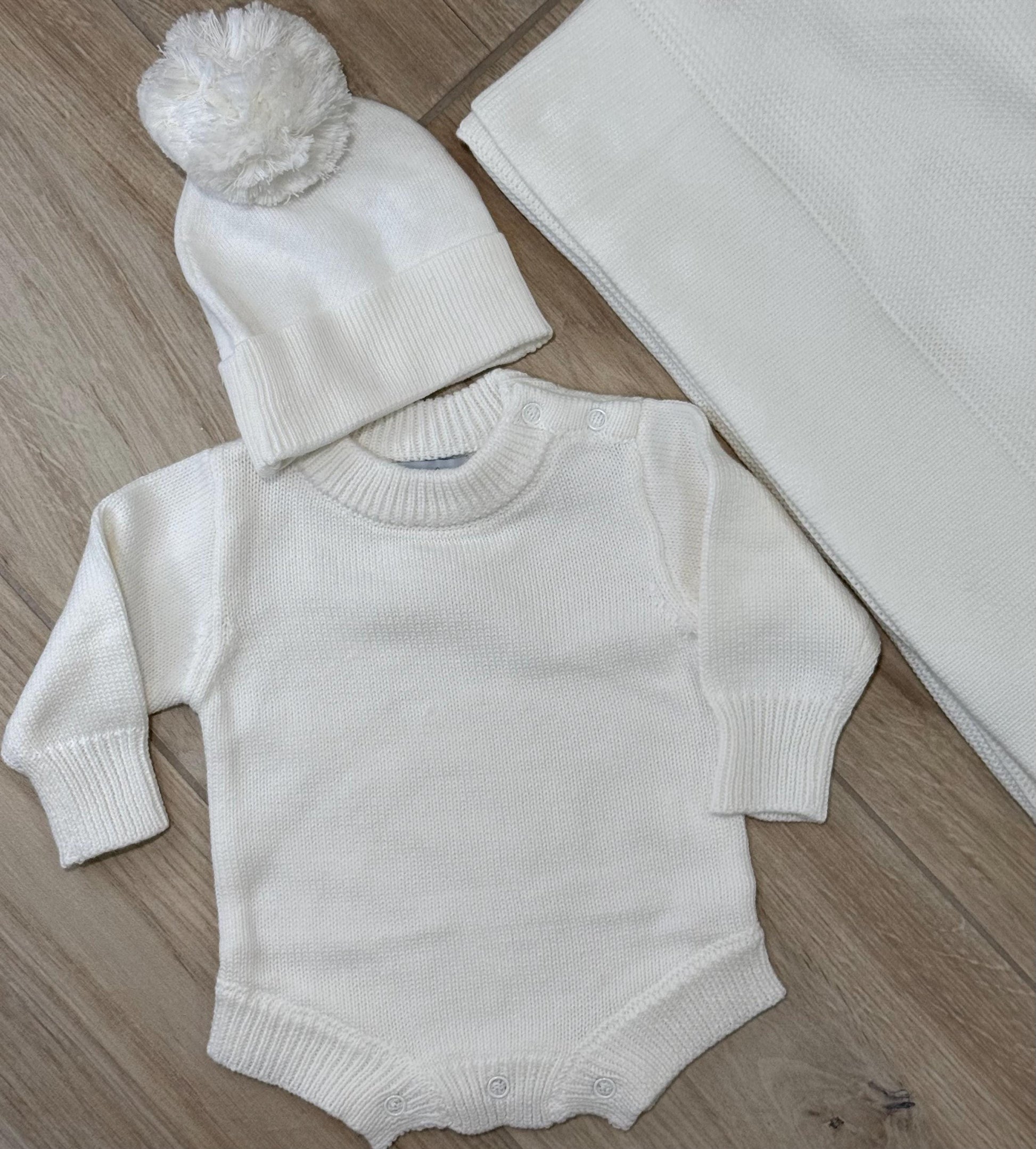 Add a matching blanket or knit hat with a pom pom to complete the perfect coming home outfit. Both the romper, blanket, and hat will be personalized just for you.