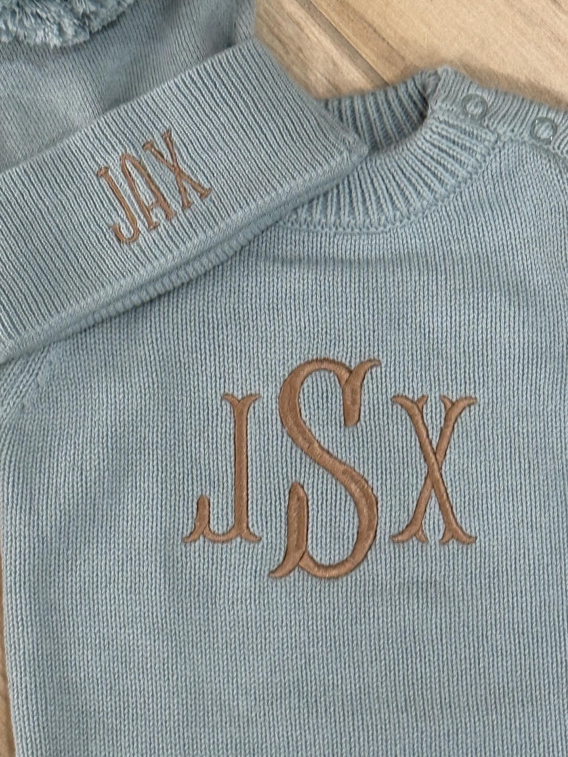 Dress your little one in timeless charm with our high quality personalized knit romper/ one piece. Made from soft breathable cotton knit, this adorable romper features snap button shoulders and legs for easy changing, and a sweet embroidered name on front.